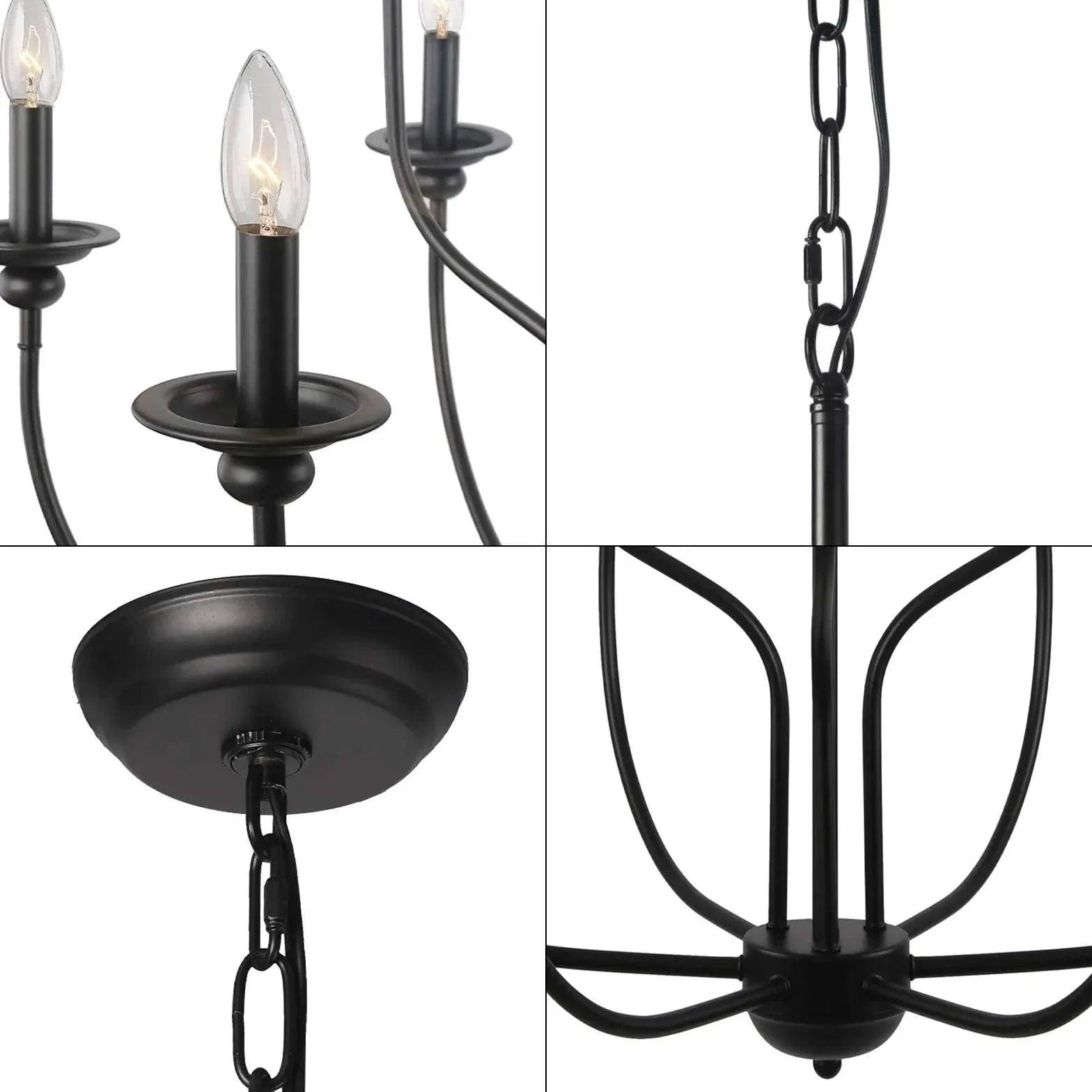 This chandelier features durable metal construction, ensuring longevity and stability. The Multi-Head Candle Design Black Chandelier for Living Room is compatible with bulbs that have an E14 base, allowing you to customize your lighting experience.