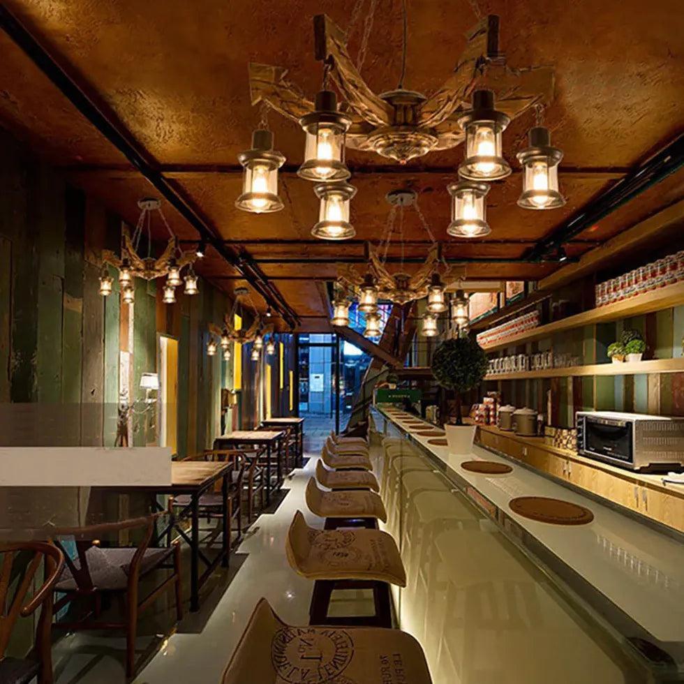 Multi-Light Wooden Lantern Dining Room Pendant Light Fixture