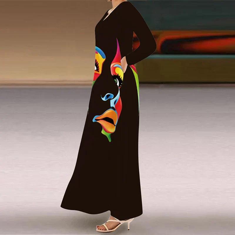 Effortlessly chic, the Natasha Women's Maxi Dress - Artistic Print - Loose Fit - Long Sleeve Flowy Design is the perfect addition to your wardrobe. With its striking artistic print and comfortable loose fit, this long sleeve dress is designed for all occasions, from casual outings to evening events.