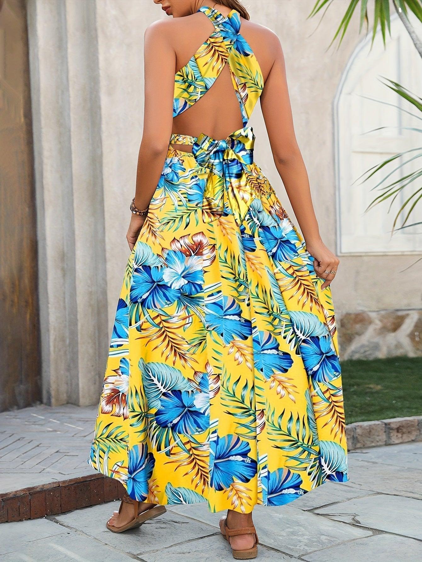 Nathalie Women's Long Paisley-Print Dress with Open Crossed Back