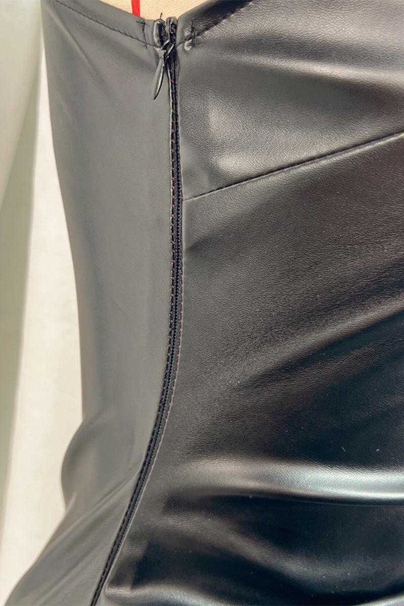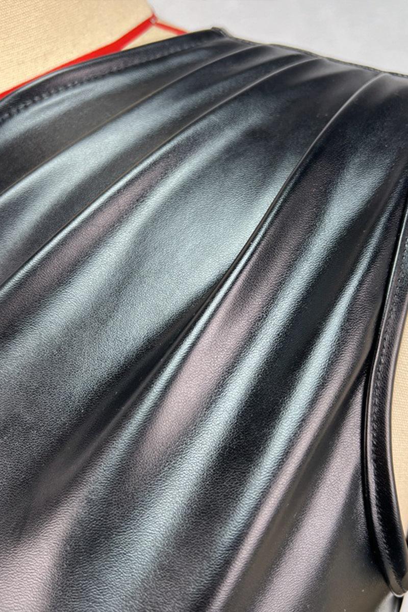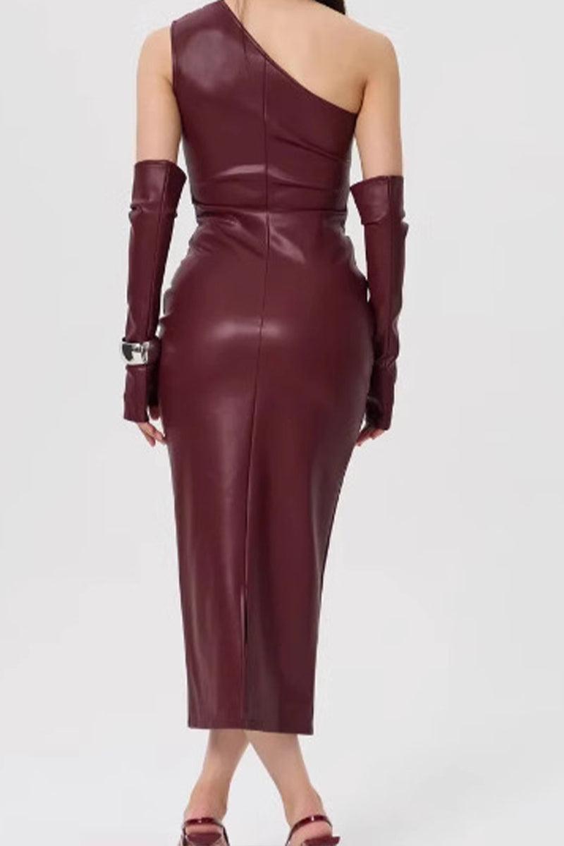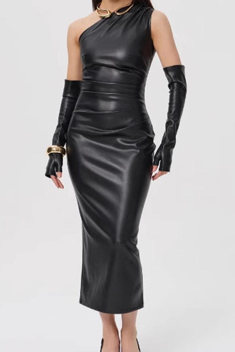 Elevate your style quotient with the Cynthia Rou Edge One-Shoulder Midi Dress. This stunning piece boasts a sleek design that contours to your body, featuring a chic one-shoulder silhouette and a ruched waist that enhances your curves. Crafted from high-quality faux leather, it delivers a bold fashion statement that's perfect for any chic evening event.