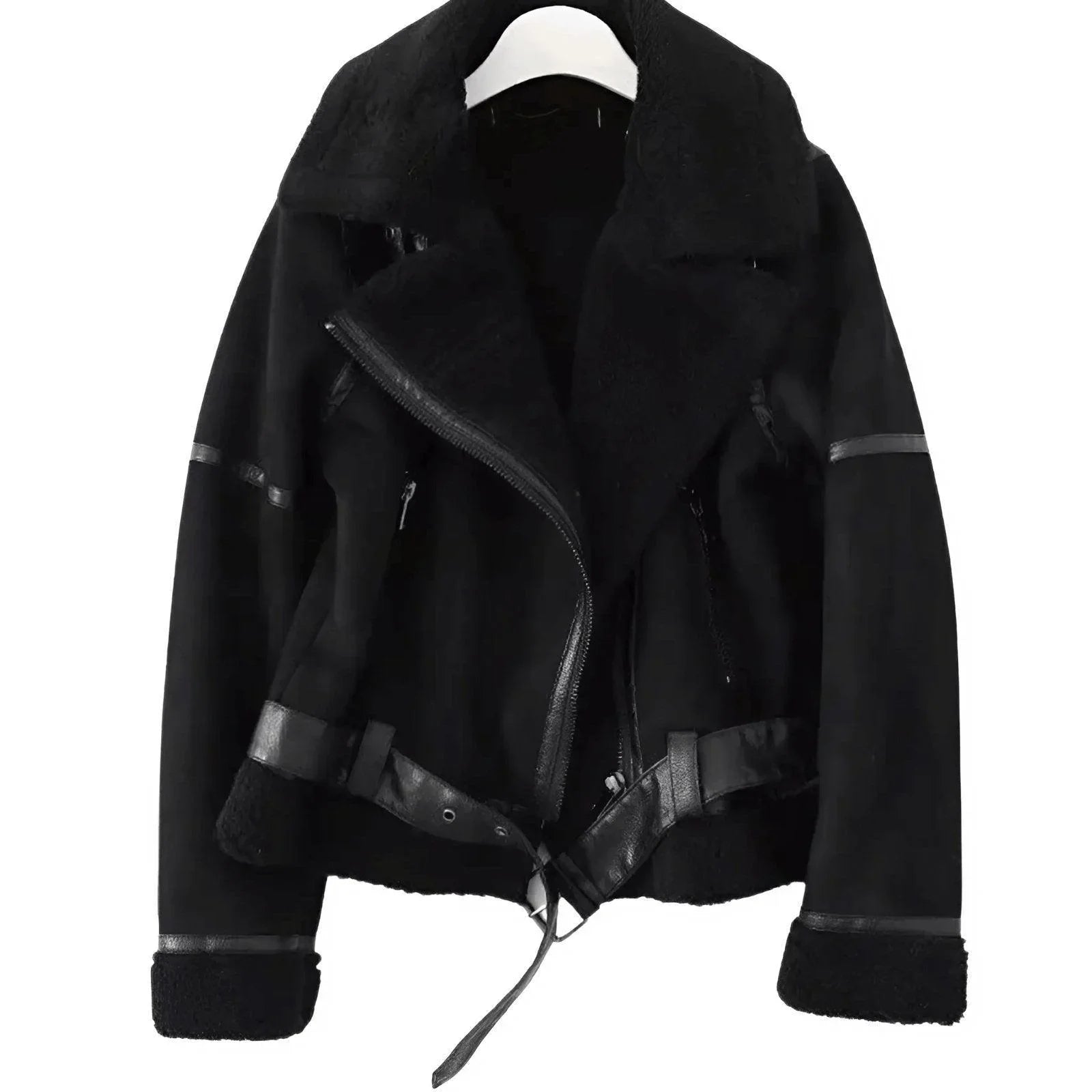 This jacket is not just a piece of clothing; it's a statement of style and sophistication. Whether you're heading to a casual outing or a more formal event, this shearling suede jacket enhances your outfit with effortless elegance.