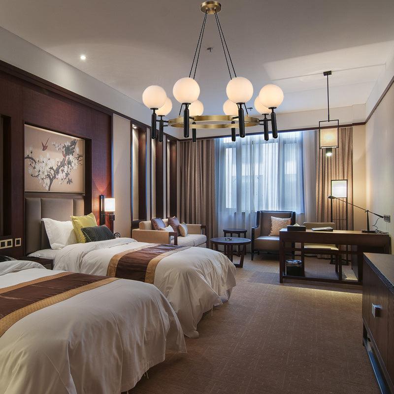 Sphere Chandelier Lighting with Circular Design Modern White Glass 8 Lights Black Hanging Fixture | Rebooters
