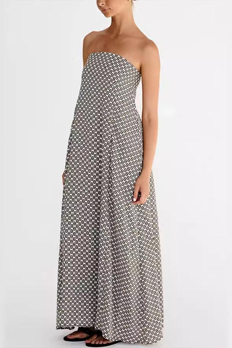 Alexa Elegant Strapless Geo Maxi Dress