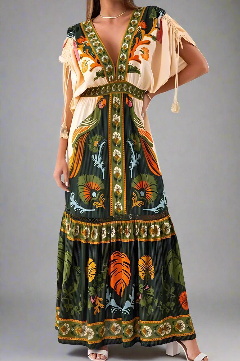 Embrace the essence of carefree elegance with the Tatiana Womens Boho Maxi Dress. This stunning piece features a vibrant tropical floral print that captures the spirit of island life, making it the perfect addition to your summer wardrobe. With a plunging V-neckline and flowy short sleeves, this dress is designed for effortless style and comfort.